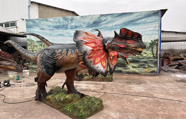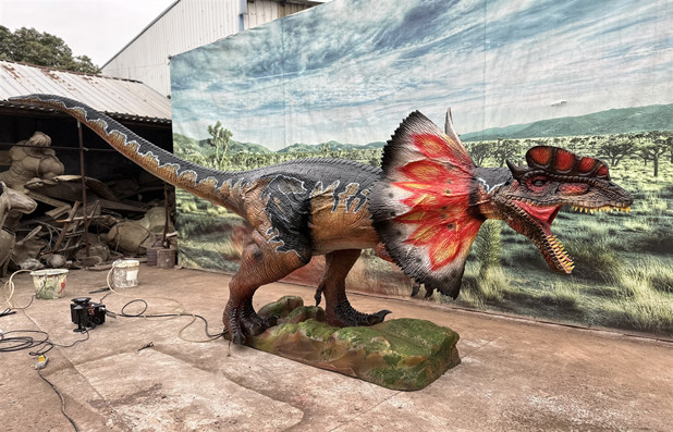 Welcome to a thrilling Jurassic adventure at our theme park, where we proudly present the Life-Size Animatronic Dilophosaurus Model!