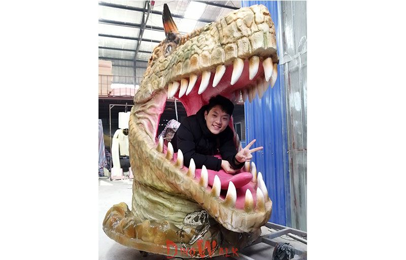 Gigantic fiberglass dinosaur's head for photo shooting