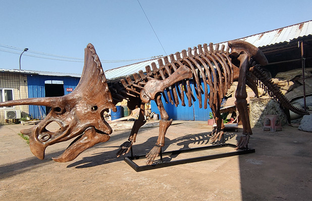 A life-size realistic fiberglass Triceratops skeleton model would be a highlight of any dinosaur-themed exhibition in a museum or educational center.This kind of dinosaur skeleton sculpture models can also serve as references for scientists, paleontologists, and educators during research and study of dinosaurs anatomy and biomechanics.