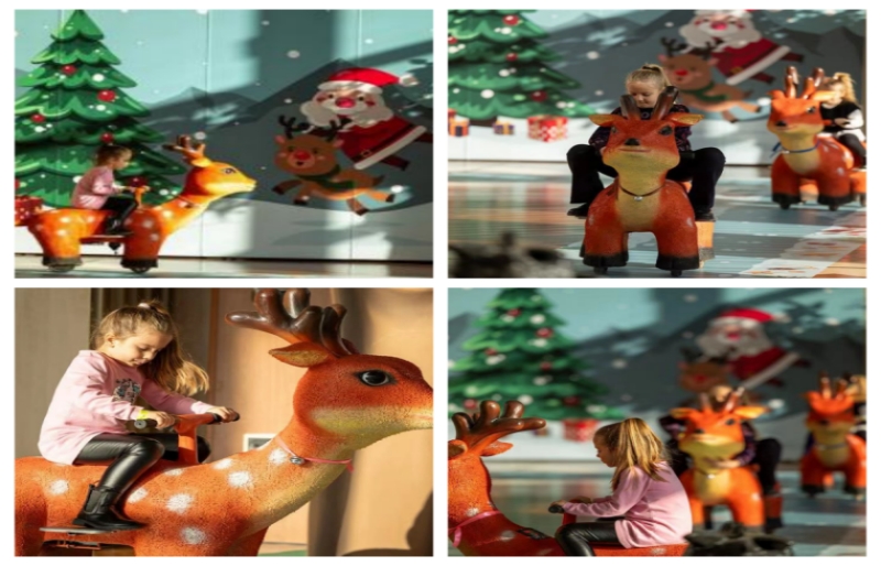 More animals dinosaur kiddie ride colors and shape can be customization. It also comes with rich sound and lighting effects. When children step on the pedals and start animal or dinosaur car, the lights on the car will light up, as if they have entered the animal or dinosaur forest. it brings a new sense to the children’s experience. There is a display,which will show the running time and battery power. The small dinosaur kiddie ride can be coin operation and remote control.
