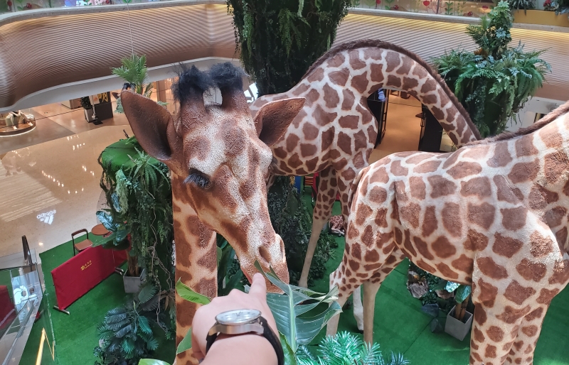 Dino Walk introduces it's latest products-realistic animatronic giraffe models designed exclusively for shopping mall commercial art display and shopping mall decoration,which attract both young and old with it's real and lifelike apprearance and create a memorable moments for visitors.