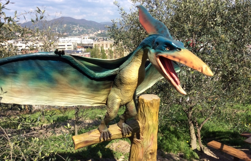 Pterosaurs, also known as pterodactyls, were among the largest of the airborne overlords, as tall as a giraffe, with membranous wings that could reach 10 meters wide when spread out. The giant beasts used their limbs (hind legs and folded wings) to roam the sky. They were the first vertebrates capable of flight. Pterosaurs were close relatives of dinosaurs, living in the same era as them, and were the first reptiles to take to the skies. Pterosaurs originated in the late Triassic period about 220 million years ago and became extinct at the end of the Cretaceous period 65 million years ago. While dinosaurs dominated the land, pterosaurs have always controlled the sky.