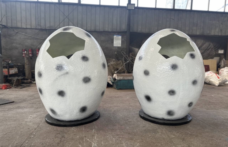 2. Fiberglass dinosaur egg for taking photos,Visitors can drill into the fiberglass dinosaur eggs and take photos with the baby T-Rex,you can customize to painting your logos on the fiberglass eggshells, which will publicize your events.