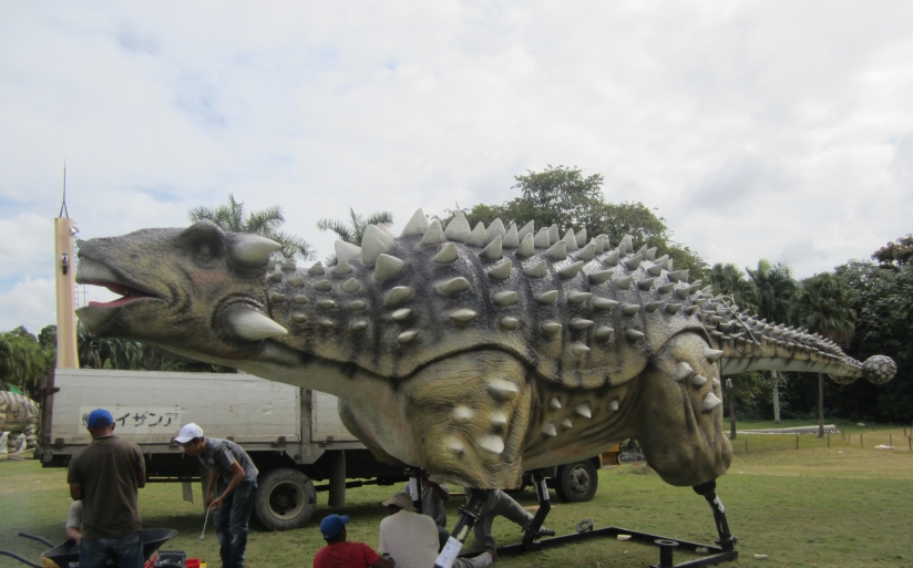 4 pieces of 40ft high containers animatronic dinosaurs models, interactive dinosaur equipment,and dinosaur decoration products arrived client park. Our client ordered around 50 pieces of variety sizes of animatronic dinosaurs models and relative dinosaurs products to build a dinosaur theme park. It costed around 2 months to build these dinosaur products. We also sent our professional install team workers to assist client, there are fews big dinosaurs, which are around 20 meters length dinosaurs models,will be needed to assemble. Let us looking forward to the final dinosaur park.